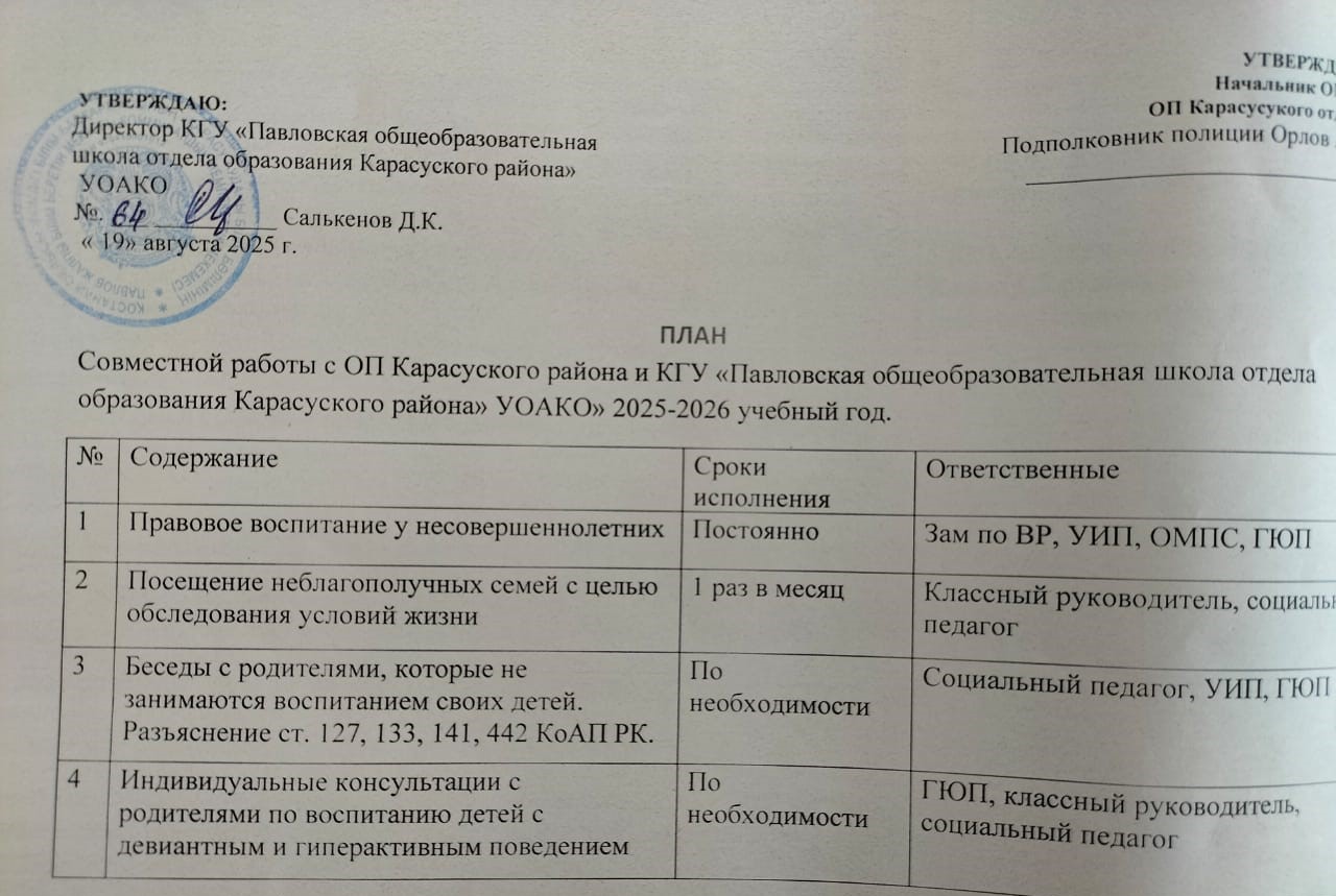 КГУ «Павловская общеобразовательная школа отдела образования Карасуского района» Управления образования акимата Костанайской области